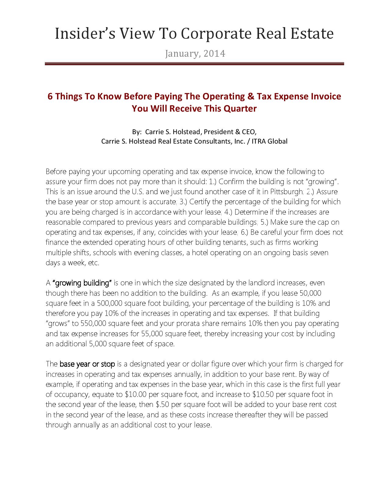 Believe it or not, corporate tenants often spend more time and money matching up purchase orders and paying for bottled water than they spend making sure that their rent expense (most likely the second highest company expense after personnel) is correct.